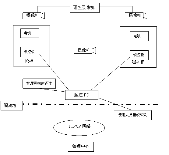 此槍彈柜系統(tǒng)不僅可作為一個(gè)單一的系統(tǒng)存在,并且還可以向其他系統(tǒng)傳送信息,通過(guò)網(wǎng)絡(luò)可以實(shí)現(xiàn)數(shù)據(jù)共享和數(shù)據(jù)傳輸,首長(zhǎng)或管理人員可以在任意網(wǎng)絡(luò)接點(diǎn)上檢查槍支或彈藥當(dāng)時(shí)的在位情況,并可以閱覽保管人員的工作狀況,還可以查詢(xún)以往的歷史數(shù)據(jù)并用多種方式輸出。